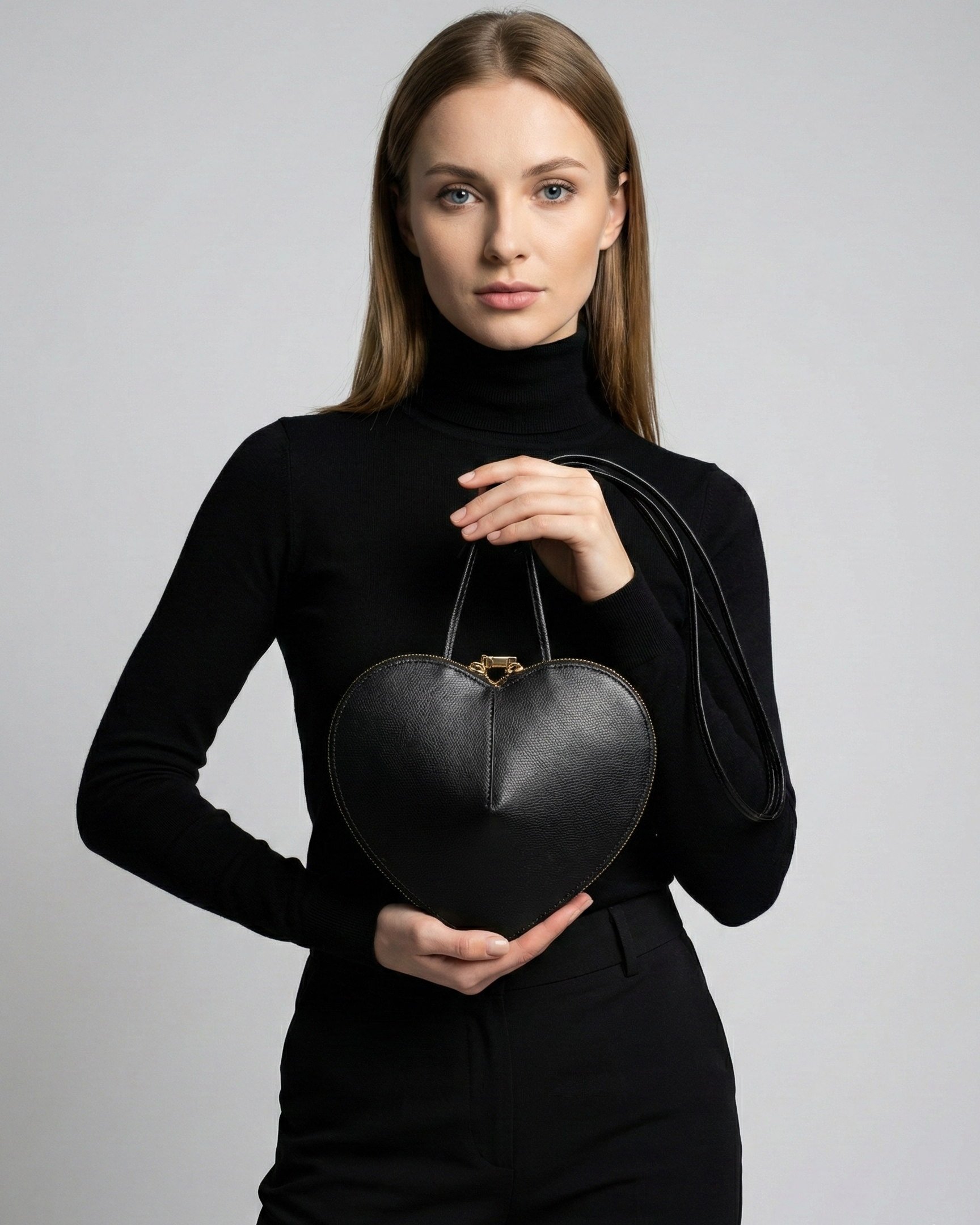 Torebka Amour wyróżnia się sylwetką w kształcie serca, która łączy w sobie kobiecość i współczesny design. Wykonana z prawdziwej skóry Togo, jest niezwykle elegancka, a zarazem wytrzymała.