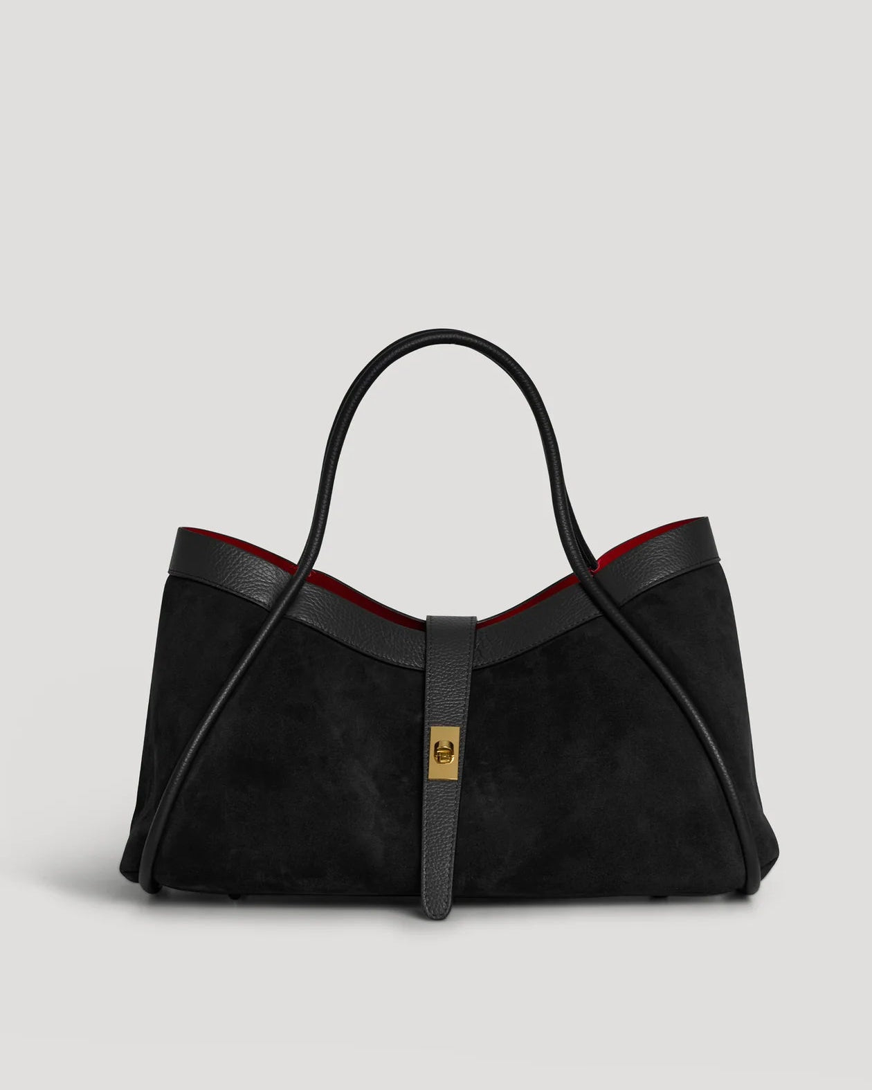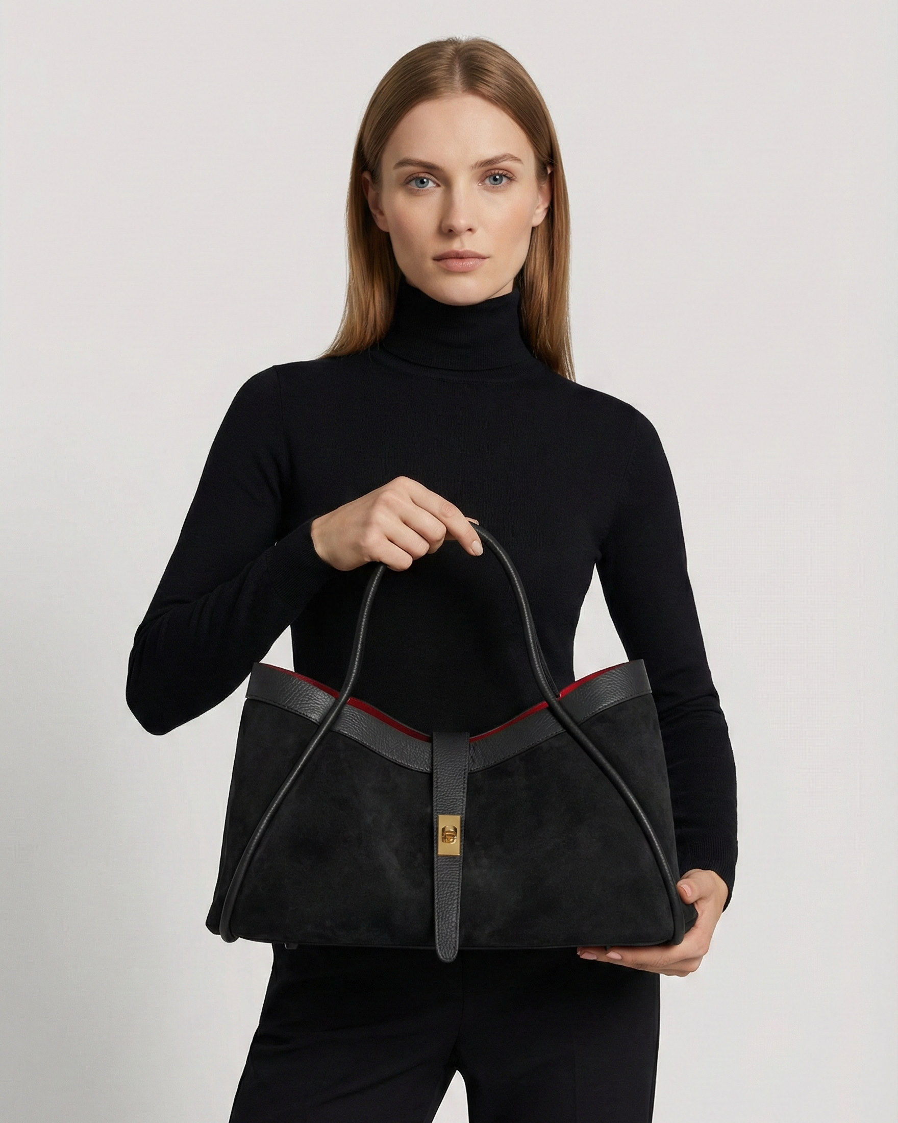 Miękka sylwetka została podkreślona metalowymi detalami w kolorze złota oraz kontrastowym wnętrzem, które wyraża silny charakter i styl. Zaprojektowana, by towarzyszyć Ci każdego dnia – można ją nosić wygodnie w dłoni, na ramieniu lub jako listonoszkę dzięki regulowanemu paskowi. To ikoniczny dodatek, w 100% Made in Italy, idealny dla osób poszukujących luksusu, jakości i wszechstronności w jednej torebce.